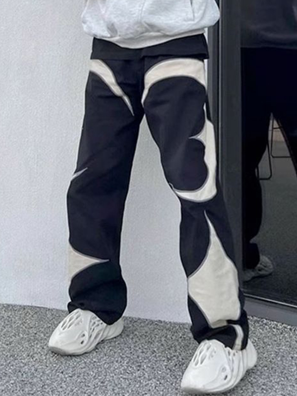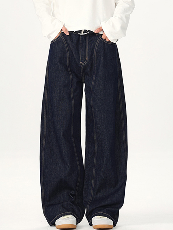 Jeans sueltos con parche de bolsillo lavado para hombre