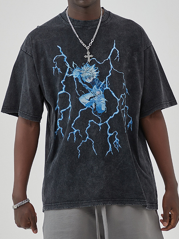 Camiseta extragrande de manga corta con estampado de rayos para hombre
