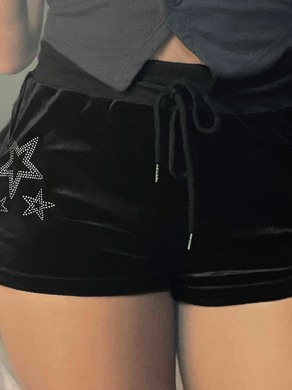Pantalones cortos de terciopelo con pentagrama de diamante Y2K