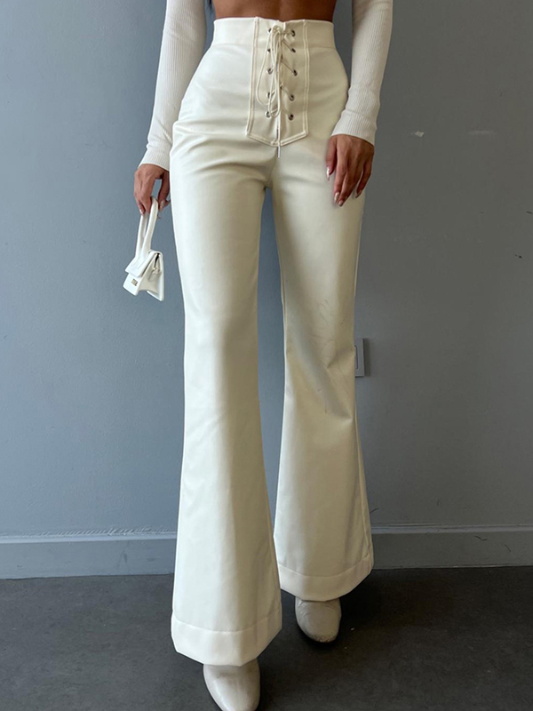 Pantalones de cuero de color sólido