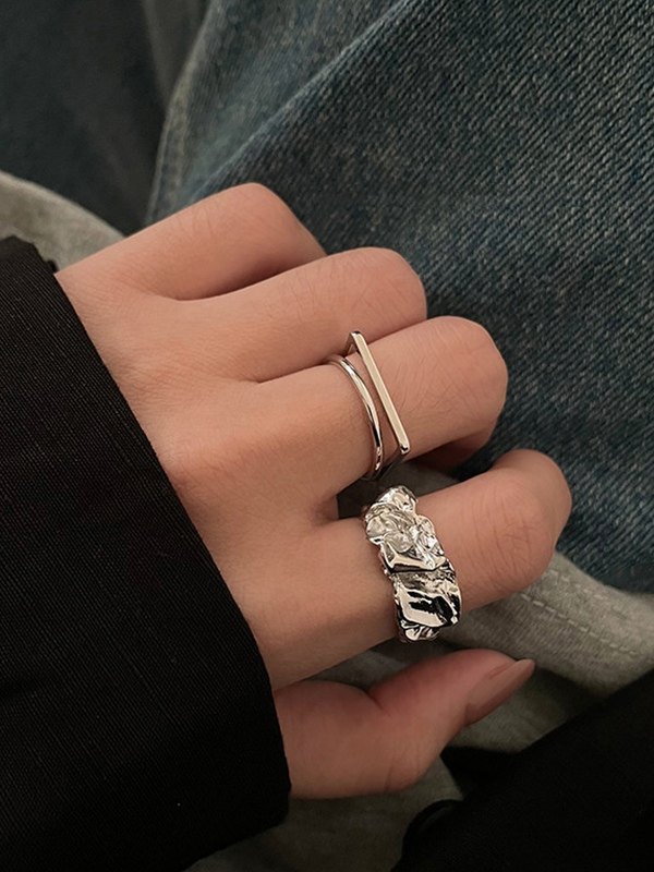 Juego de anillos de plata irregulares de 2 piezas