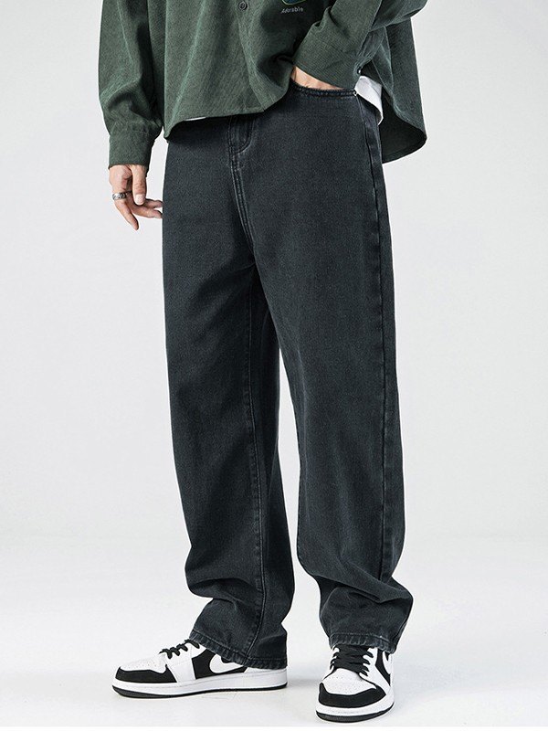 Jeans sueltos con lavado básico para hombre