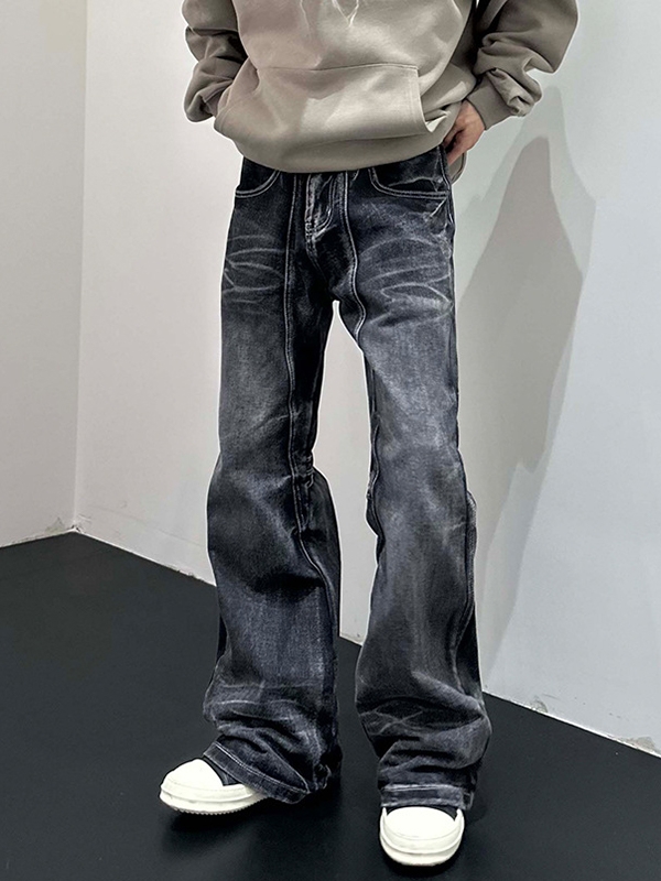 Vaqueros holgados con lavado de bigotes y empalme desgastados vintage para hombre