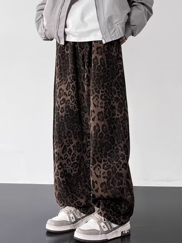 Jeans Sueltos Con Estampado De Leopardo De Nicho Retro Americano Para Hombres