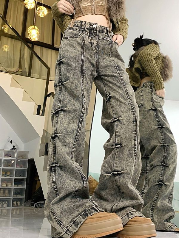 Vaqueros holgados estilo machete deconstruidos y lavados de estilo retro americano