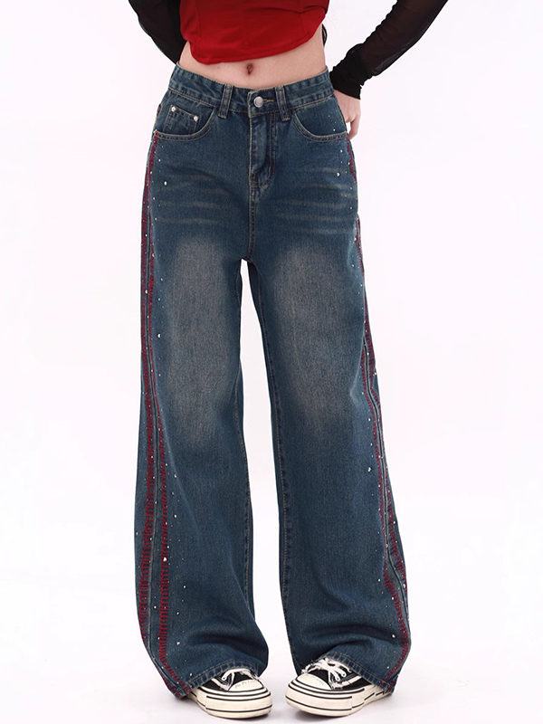 Vaqueros rectos holgados con letras de barro amarillas vintage