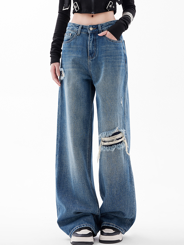 Jeans Boyfriend con perforación en caliente para industria pesada
