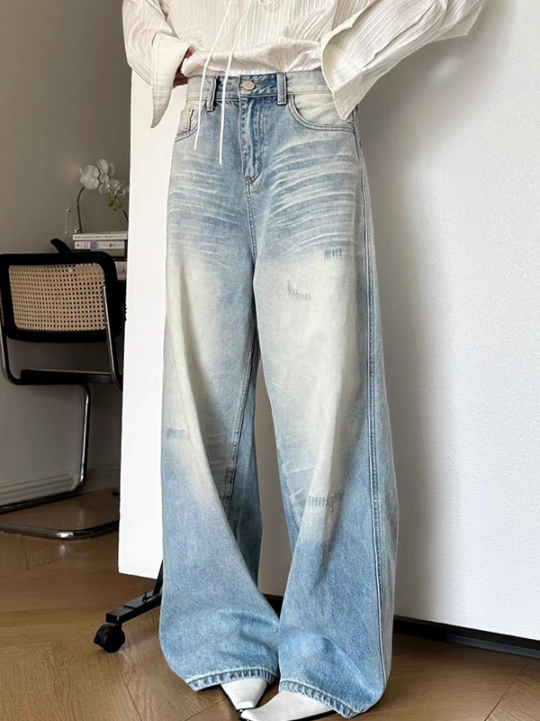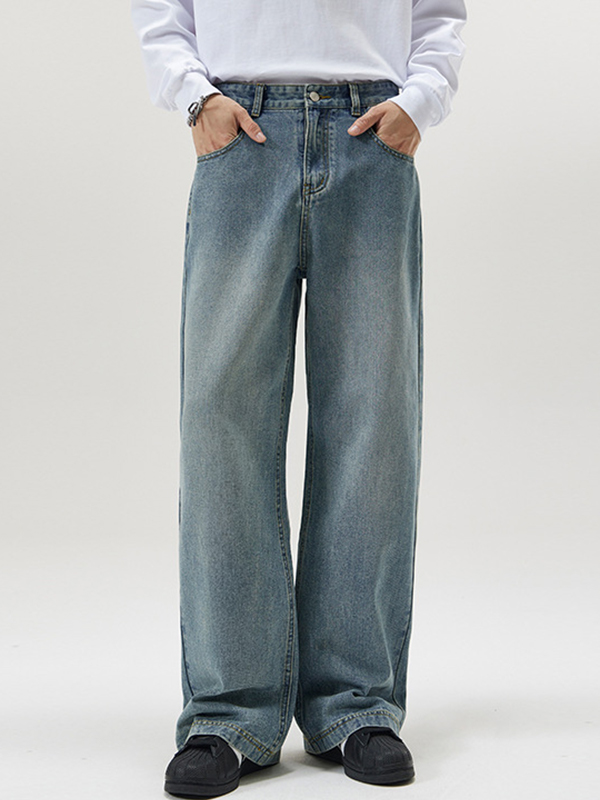 Pantalones cortos de mezclilla sueltos rectos lavados vintage para hombre