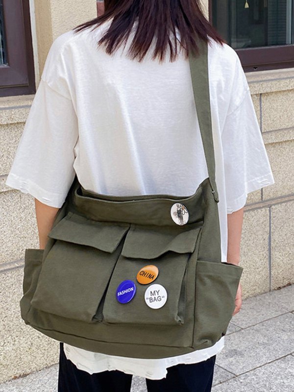 Bolso bandolera caqui de lona con dibujos animados