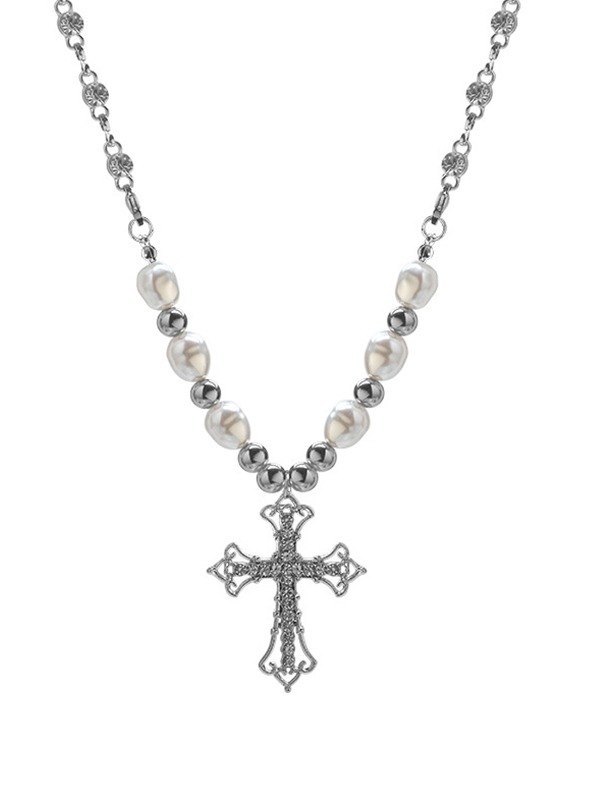 Collar de perlas de imitación con colgante de cruz
