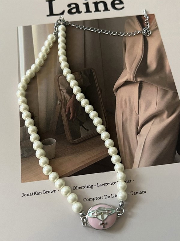 Collar de perlas de imitación con dije de esmalte