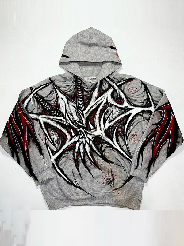 Sudadera con capucha de manga larga extragrande con estampado oscuro para hombre