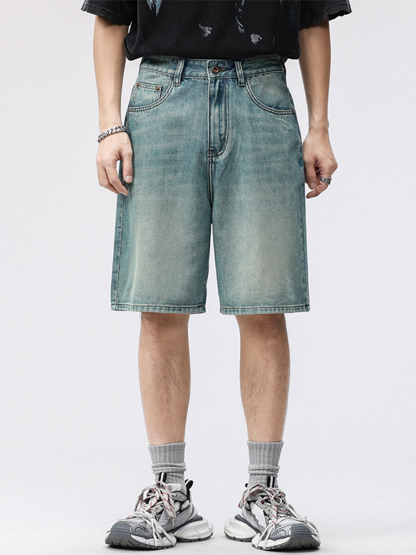 Pantalones cortos sueltos de mezclilla lavada vintage para hombre