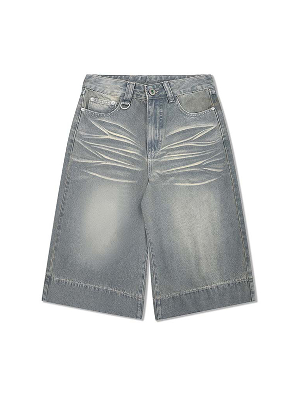 Pantalones cortos sueltos bordados desgastados lavados para hombre