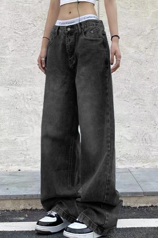 Vaqueros boyfriend de pierna ancha, holgados y drapeados
