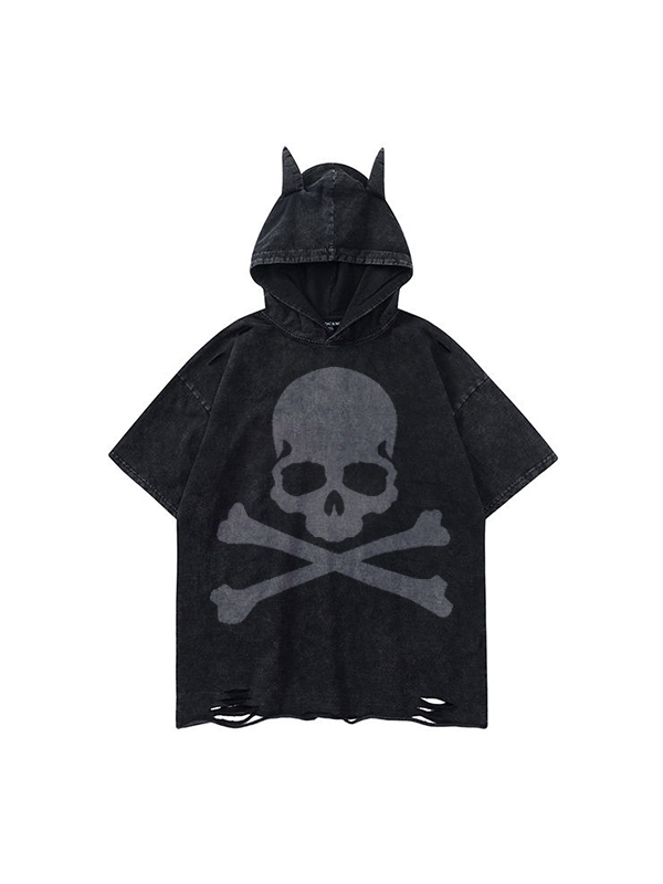 Camiseta extragrande de manga larga con capucha y calavera para hombre
