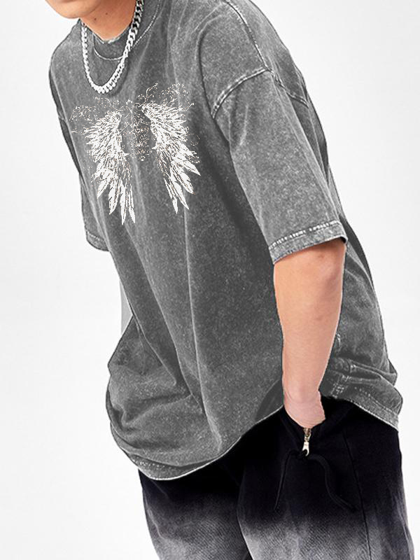 Camiseta de manga corta extragrande con estampado de alas para hombre