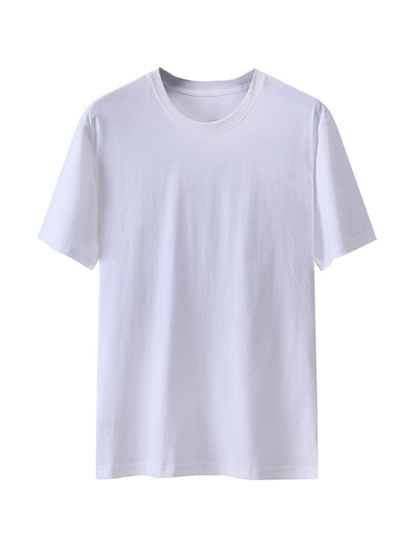Camiseta de manga corta de algodón de fibra larga de color liso para hombre