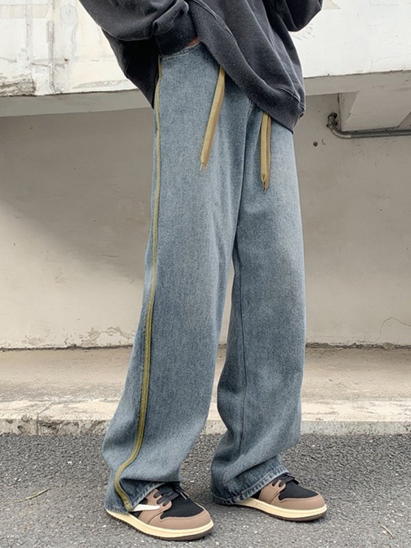 Vaqueros holgados con lavado de bigotes y empalme desgastados vintage para hombre