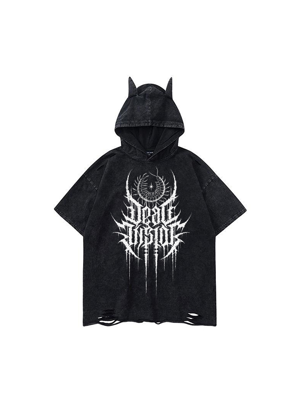 Manga corta con estampado de letras estilo oscuro de Little Devil