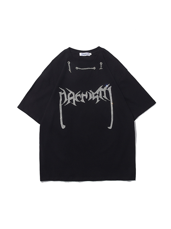 Camiseta de manga corta con letras de diamantes para hombre