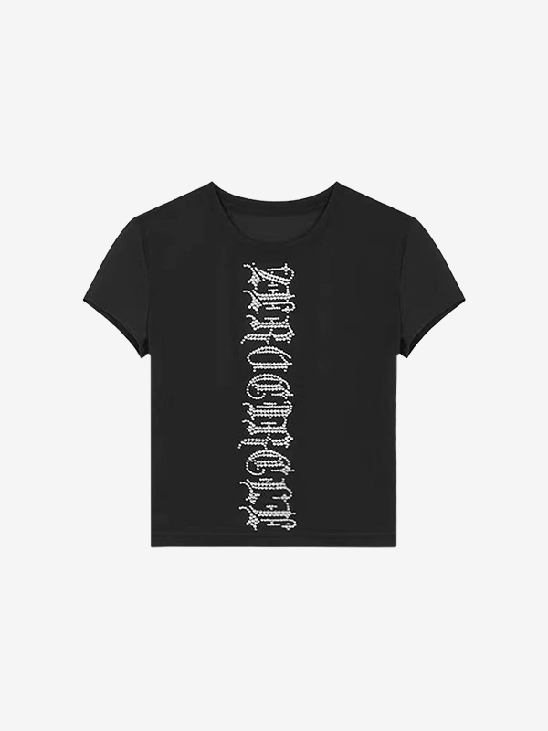Camiseta de manga corta con estampado de diamantes