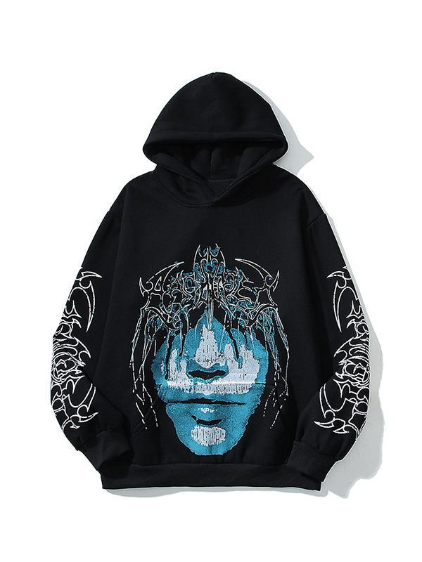 Sudadera con capucha extragrande con estampado de retrato de calle para hombre