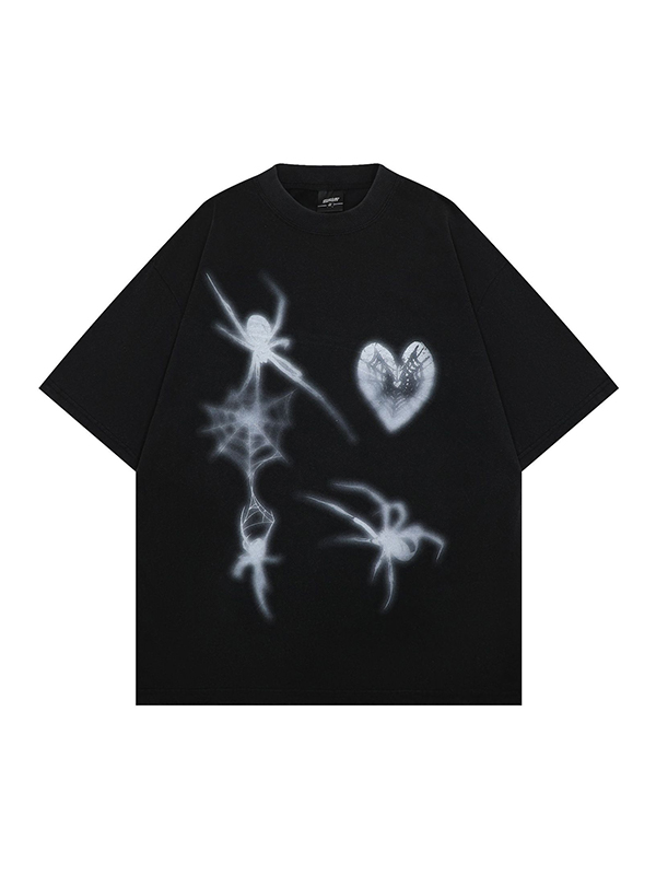 Camiseta extragrande de manga corta con estampado de arañas para hombre