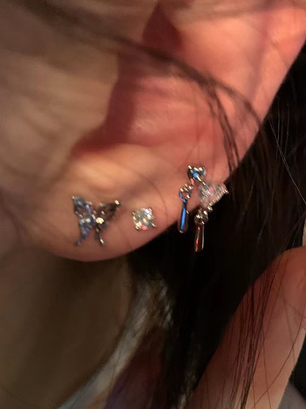 6 pendientes de tuerca con diamantes de corazón de mariposa brillante.