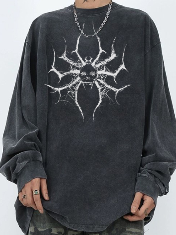 Camiseta holgada informal de manga larga negra con estampado de araña