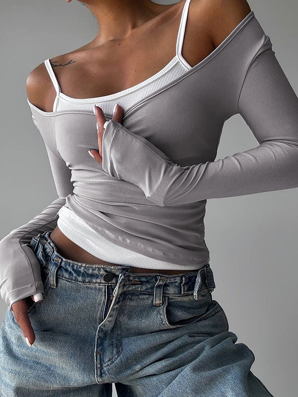 Camiseta de manga larga de dos piezas con bloques de color