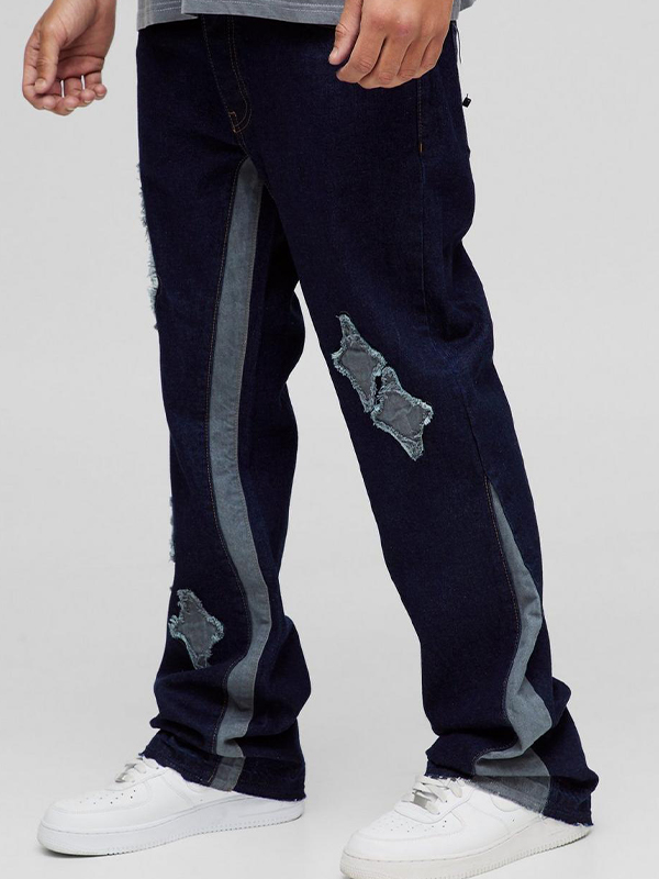 Vaqueros holgados con estampado de bloques de color para hombre