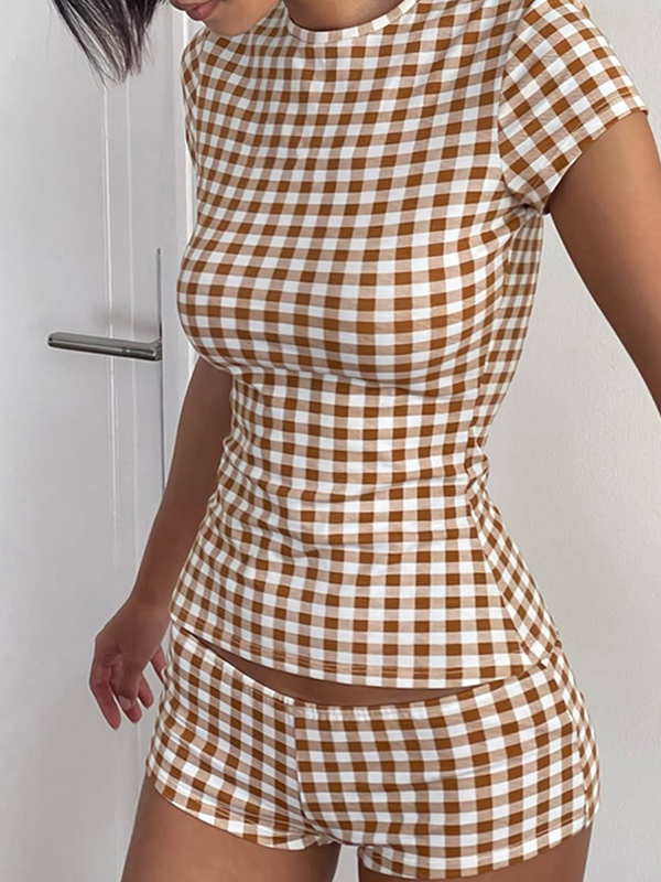 Traje de dos piezas adelgazante con escote redondo y hombros descubiertos
