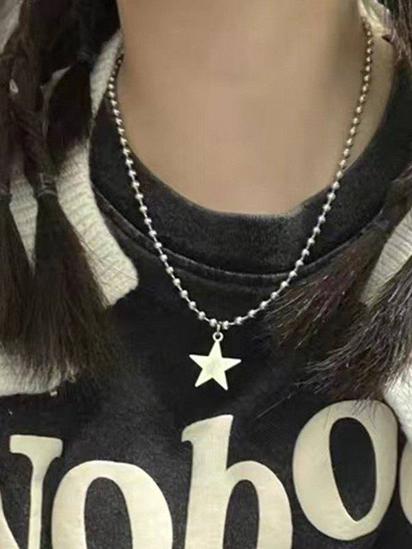Collar de cadena con cuentas de estrella plateada
