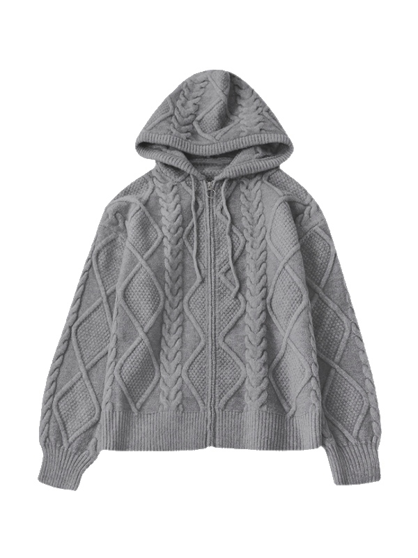 Sudadera con capucha extragrande de punto trenzado liso con cremallera para hombre