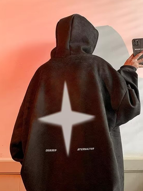 Sudadera con capucha extragrande con estampado de mariposas y estrellas coloridas de Street para hombre