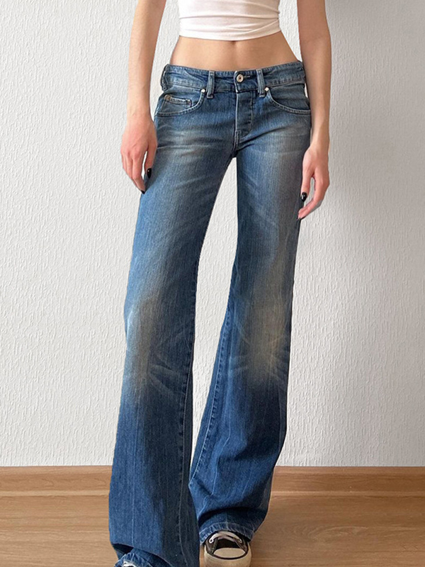 Jeans acampanados versátiles básicos de adelgazamiento de tiro bajo