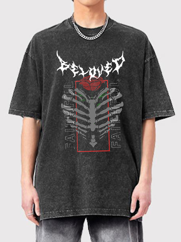Camiseta de manga corta con gráfico de lavado vintage para hombre