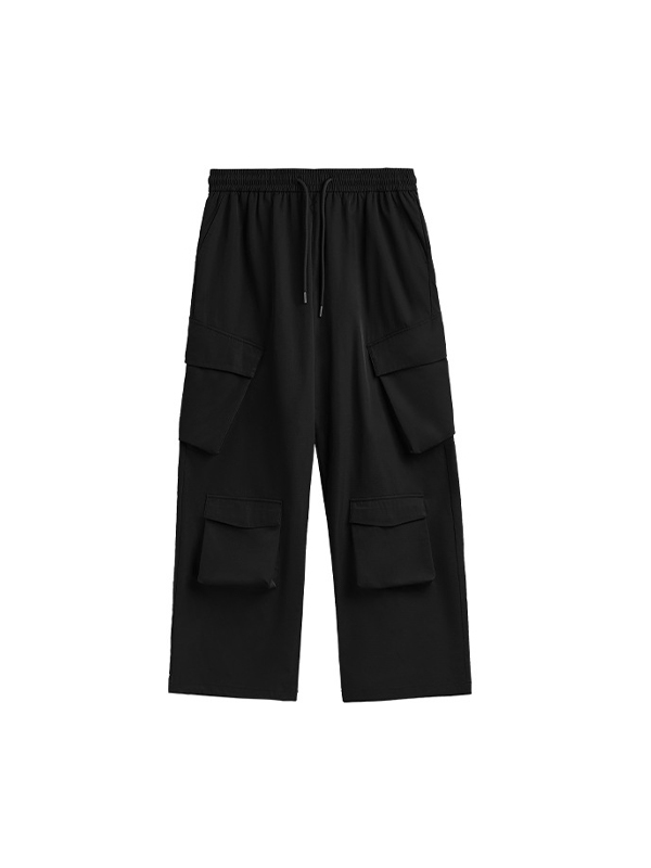 Pantalones cargo holgados lisos con múltiples bolsillos para hombre