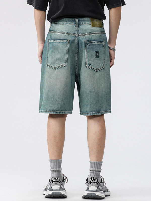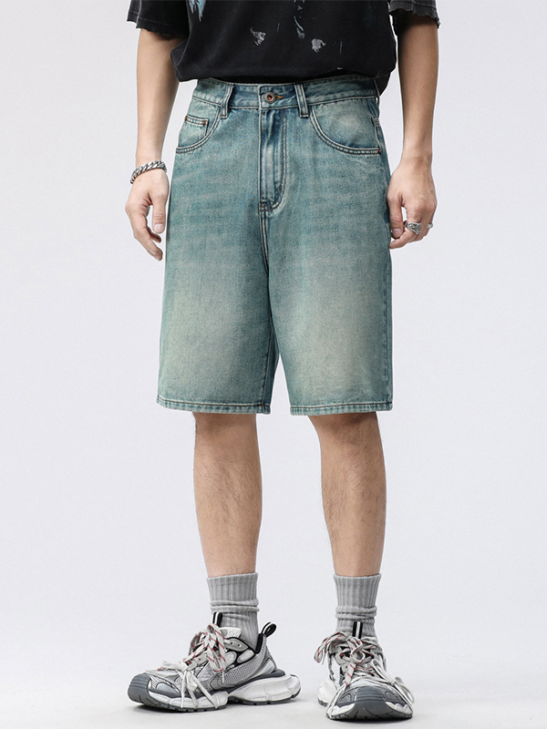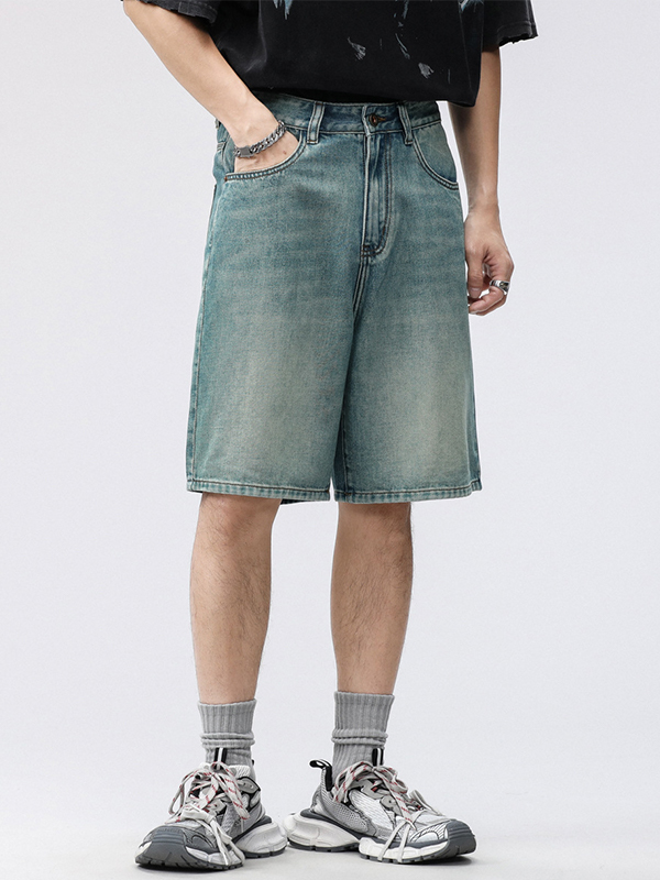 pantalones cortos de mezclilla rectos casuales para hombre