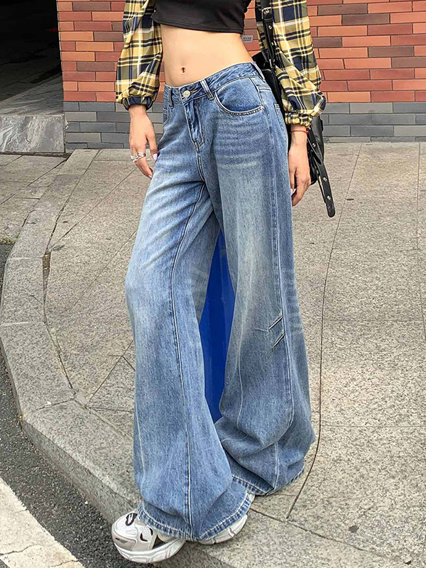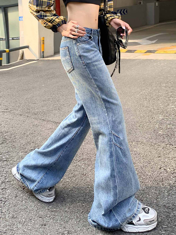 Vaqueros acampanados desgastados estilo retro americano