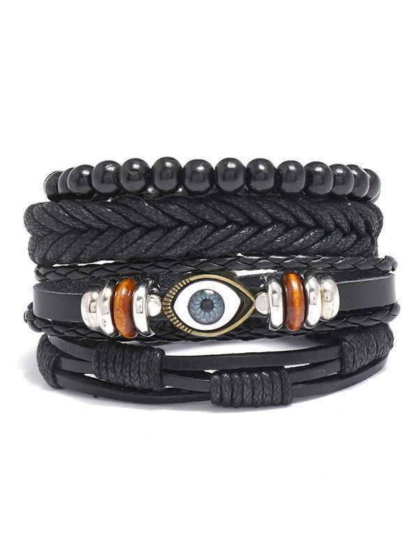 Juego de pulseras de cuero de pu trenzado boho de 4 piezas