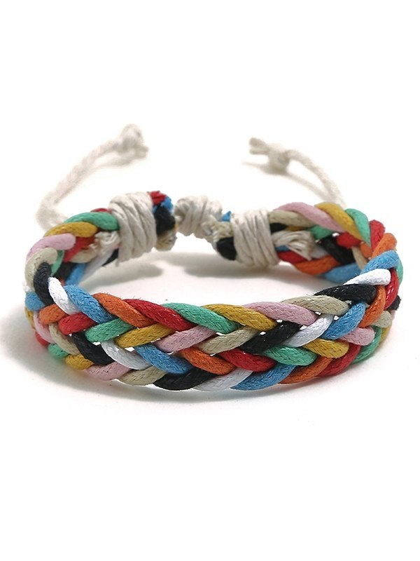 Pulsera Étnica De Cuerda Tejida Gruesa
