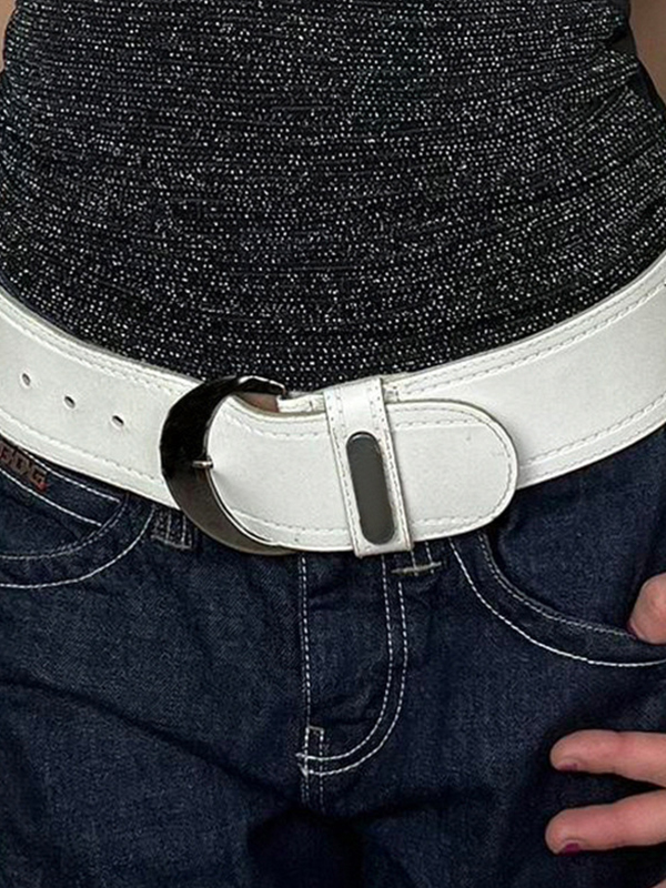 Cinturón ancho básico de moda con aro de metal