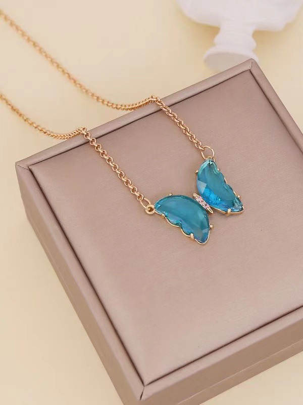 Collar de perlas de imitación de mariposa de diamantes de imitación