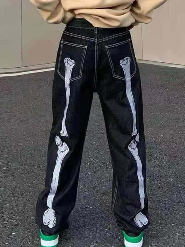 Vaqueros holgados con estampado de calaveras para hombre