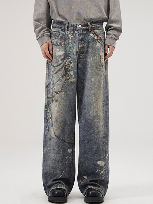 Vaqueros holgados con microcremallera lavados y envejecidos para hombre