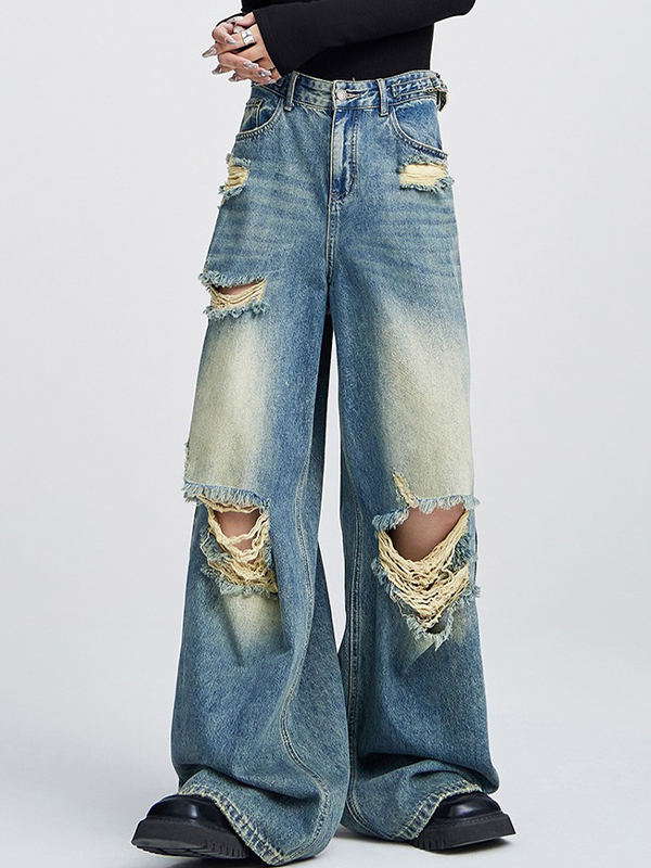 Vaqueros vintage rotos de la calle principal estadounidense