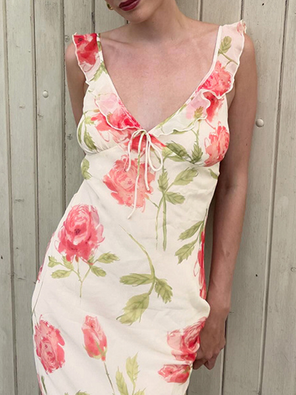 Vestido largo con estampado floral estilo resort