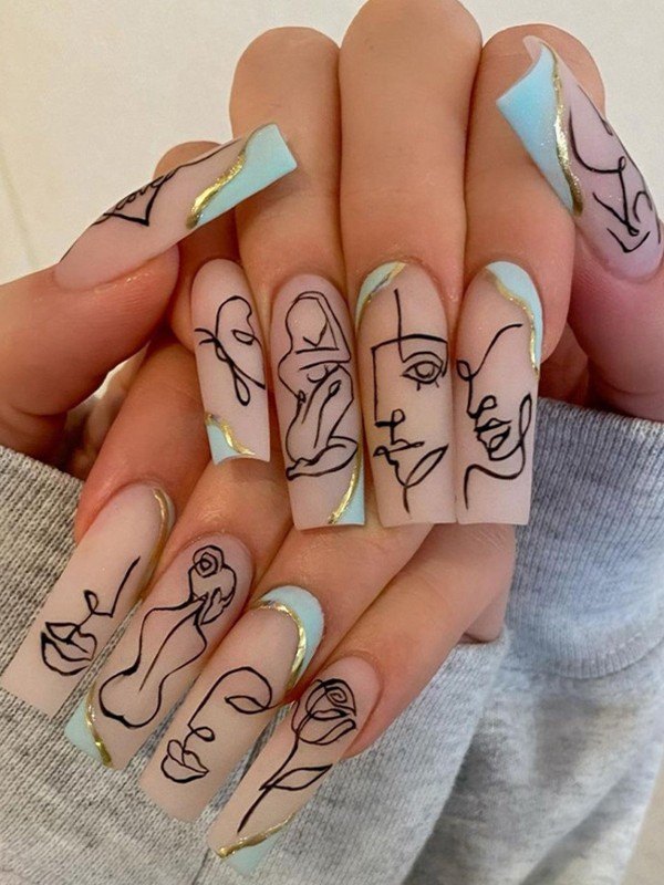 24 piezas de patrón de contorno abstracto prensa en las uñas